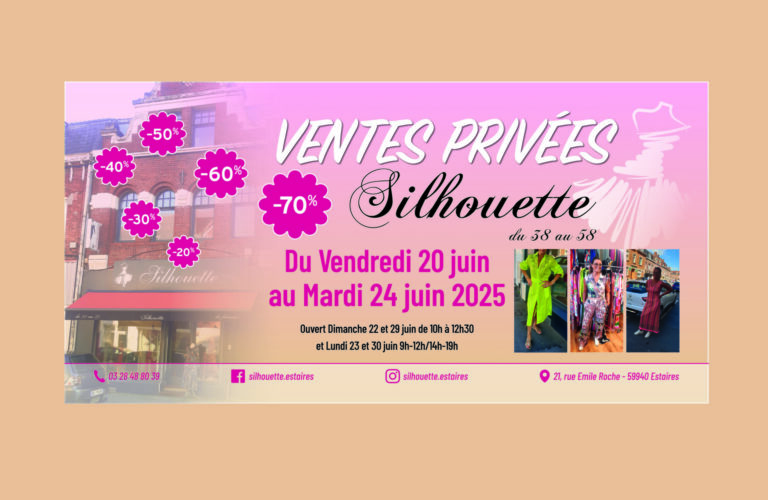 Conception d’un flyer élégant et harmonieux pour promouvoir les ventes privées du magasin Silhouette, alliant identité visuelle forte et communication claire afin de valoriser l’exclusivité de l’événement